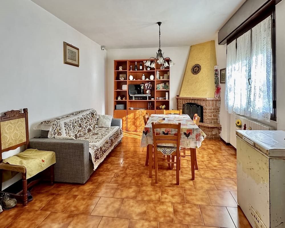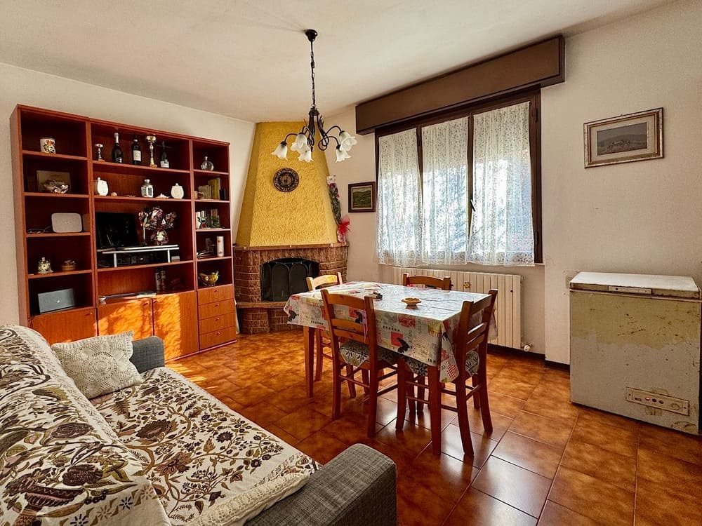 L'appartamento è composto da sala con camino, cucinotto, ripostiglio, due camere, bagno, balcone, cantina ed è stato ristrutturato con caldaia nuova a metano, impianto di video sorveglianza, tapparelle elettriche nuove, doppi vetri e cappotto sula parete nord, il tutto con bassissime spese condominiali e classe energetica E