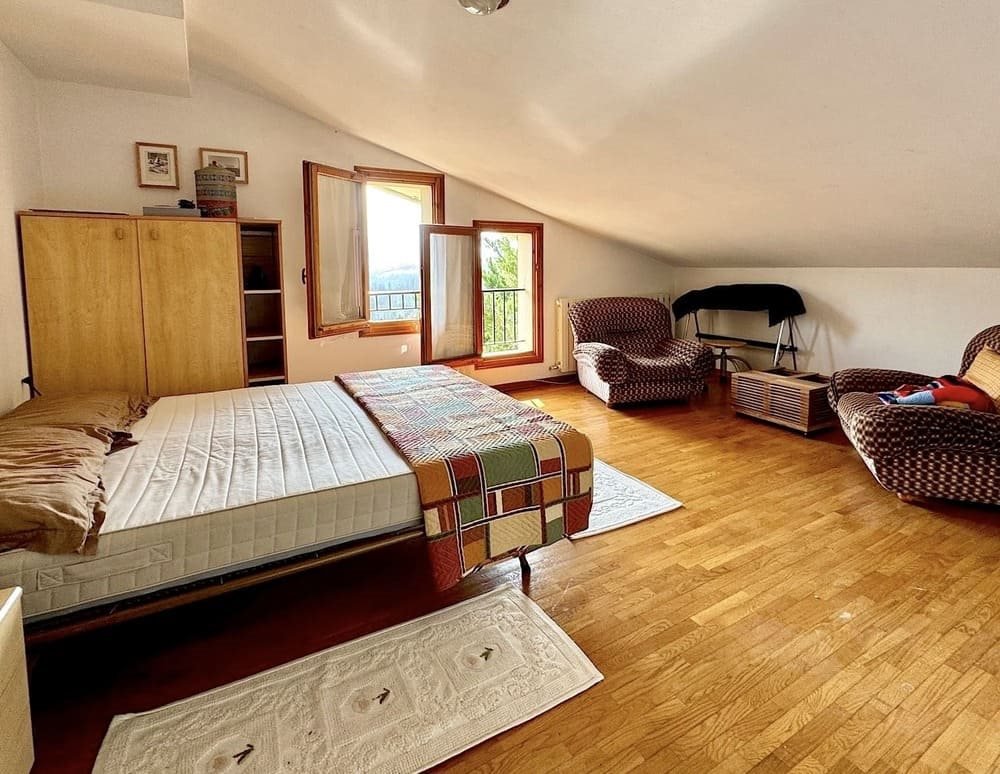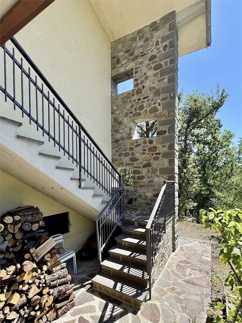 Esternamente troviamo un garage, un giardino parzialmente recintato di circa 7000 mq.